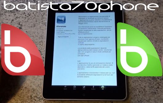 L’applicazione si pone l’obiettivo di sostenere la popolazione Emiliana colpita dal terremoto di Maggio 2012. Con STerremoto avrai la possibilità di segnalare un terremoto indicandone l’intensità percepita ovvero visualizzare le altre segnalazioni, senza effettuare alcun tipo di registrazione.