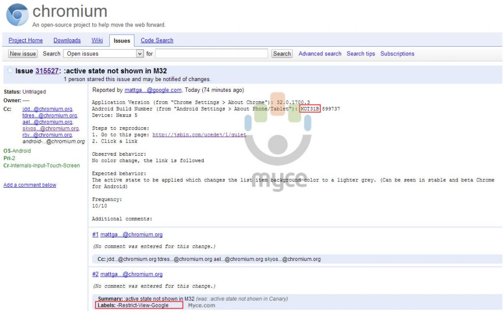 Misteriosa build di Android 4.4 compare sull'Issue Tracker di Chromium: sarà la versione 4.4.1?