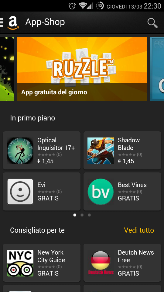 Mi fanno notare dalla regia che sull’App Shop di Amazon l’app gratuita del giorno è Ruzzle, in versione completa. Il gioco, che un periodo ha letteralmente infestato le strade ed i luoghi pubblici coi suoi suoni e le sue sfide, torna dunque a far parlare di se, forse proprio perché un po’ uscito dal radar. Che dire, se il gioco vi piace e non avete mai comprato la versione completa, oggi potete installarla gratuitamente.