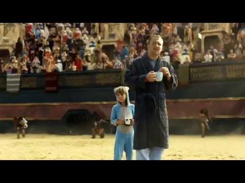 Siamo all’interno di un Colosseo dell’Antica Roma. L’imperatore e la folla sugli spalti aspettano l’arrivo dei gladiatori e, proprio mentre si spalancano i cancelli dell’arena, i due protagonisti – padre e figlio – si trovano al centro dell’azione con indosso solo il pigiama e uno sguardo perplesso sul volto. La musica cresce, la folla esulta e la tensione aumenta. Ma, proprio quando sembra che stia per iniziare il combattimento, i gladiatori si rivelano essere soltanto immagini sullo schermo del nuovo Samsung TV UHD CURVO e padre e figlio vengono riportati nel salotto di casa, avvinti nelle immagini del loro televisore.