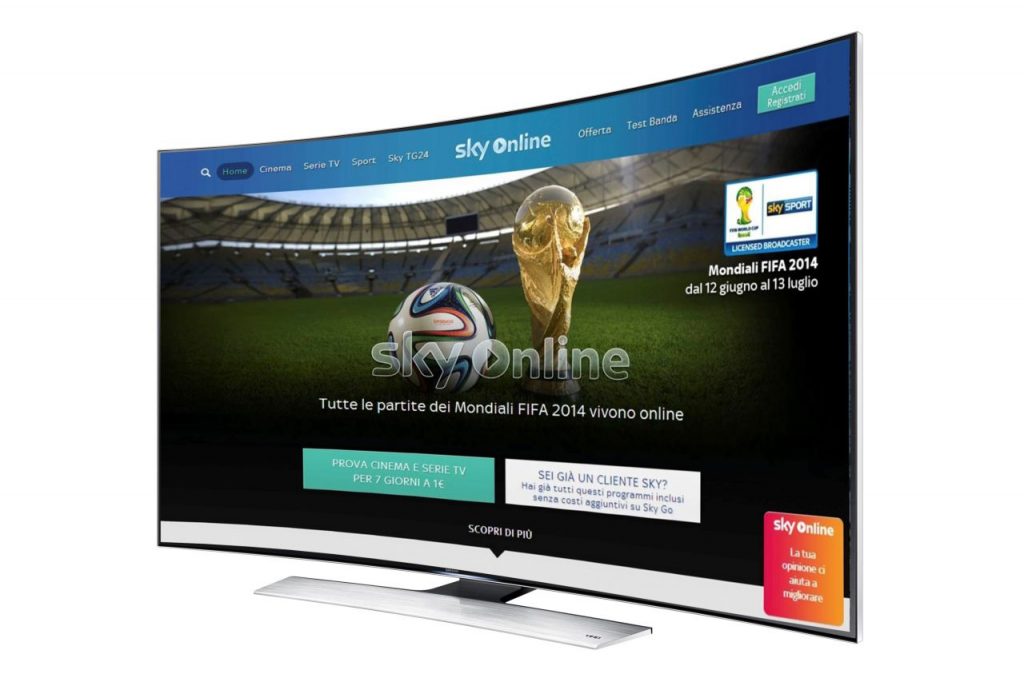Sky Online è il nuovo servizio di streaming on demand disponibile sui principali dispositivi connessi a Internet e, in esclusiva per tutto il 2014, sugli Smart TV Samsunge offre la possibilità di guardare in diretta tutte le 64 partite in calendario, 39 delle quali disponibili solo su Sky grazie al “Pass Mondiali Fifa 2014”. Sky Online – fruibile quindi senza decoder e senza parabola – offre in aggiunta agli appuntamenti sportivi anche il meglio del cinema e delle serie tv. Il grande spettacolo di Sky diventa a portata di App per godere sul grande schermo del proprio Smart TV di una programmazione personalizzata.