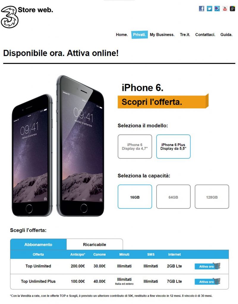 Come al solito 3 propone delle tariffe molto interessanti per chi volesse acquistare uno smartphone con vendita rateale, sia in abbonamento che ricaricabile, maggiori informazioni nel 3Store.