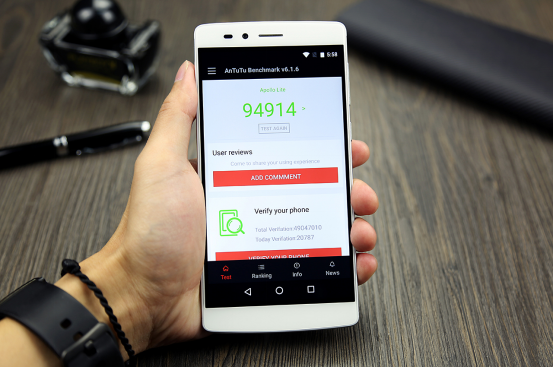 Oggi Vernee ha voluto svelare ulteriori dettagli sul device tramite un video su Youtube, in cui viene eseguito il test benchmark AnTuTu, totalizzando 94.914 punti, punteggio in linea con Meizu Pro 6 e Huawei P9.