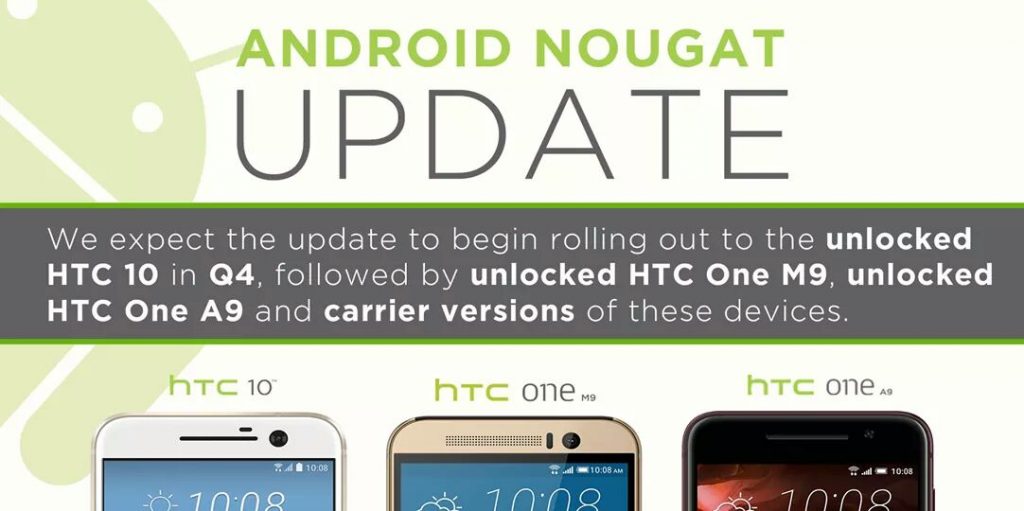 HTC 10, One M9 e A9 riceveranno Android 7.0 Nougat