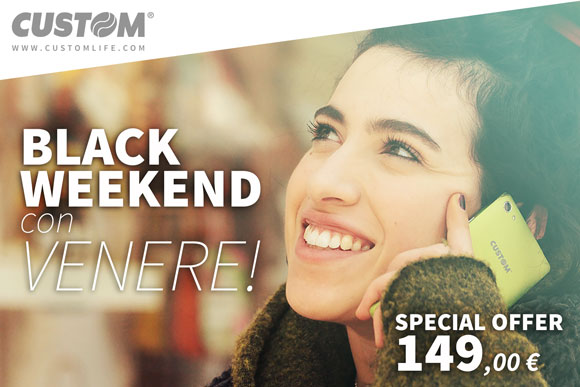 Custom Phone ha pensato di riservarti un intero Black WeekEnd ed è lieta di proporti il suo smartphone top di gamma Venere ad un prezzo eccezionale di 149 euro (IVA inclusa).