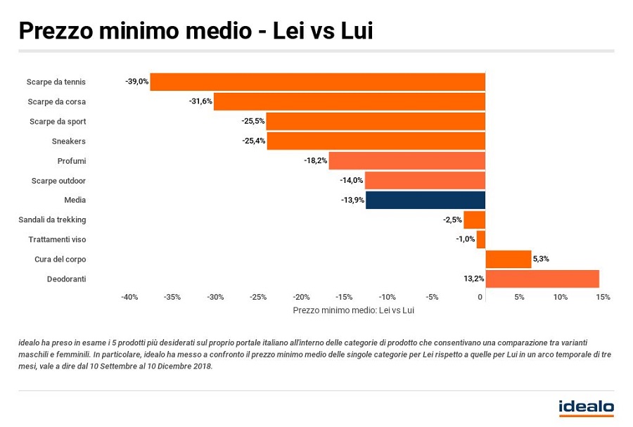 “Il mercato e-commerce è dominato da prezzi sempre più dinamici, in particolare per i prodotti femminili – ha commentato Fabio Plebani, Country Manager per l’Italia di idealo – Tuttavia, siamo sicuramente felici di poter dire che grazie alla comparazione prezzi è possibile sfruttare a proprio favore queste continue oscillazioni, acquistando al prezzo più basso nel momento giusto. Il nostro consiglio è quindi quello di utilizzare sempre un comparatore prezzi prima di effettuare ogni spesa, a maggior ragione quando si tratta di acquistare prodotti di uso sporadico per i quali è più difficile accorgersi di eventuali variazioni senza gli strumenti adeguati. In questo modo sarà possibile annullare o ridurre gli effetti di eventuali Pink Tax o Blue Tax”.