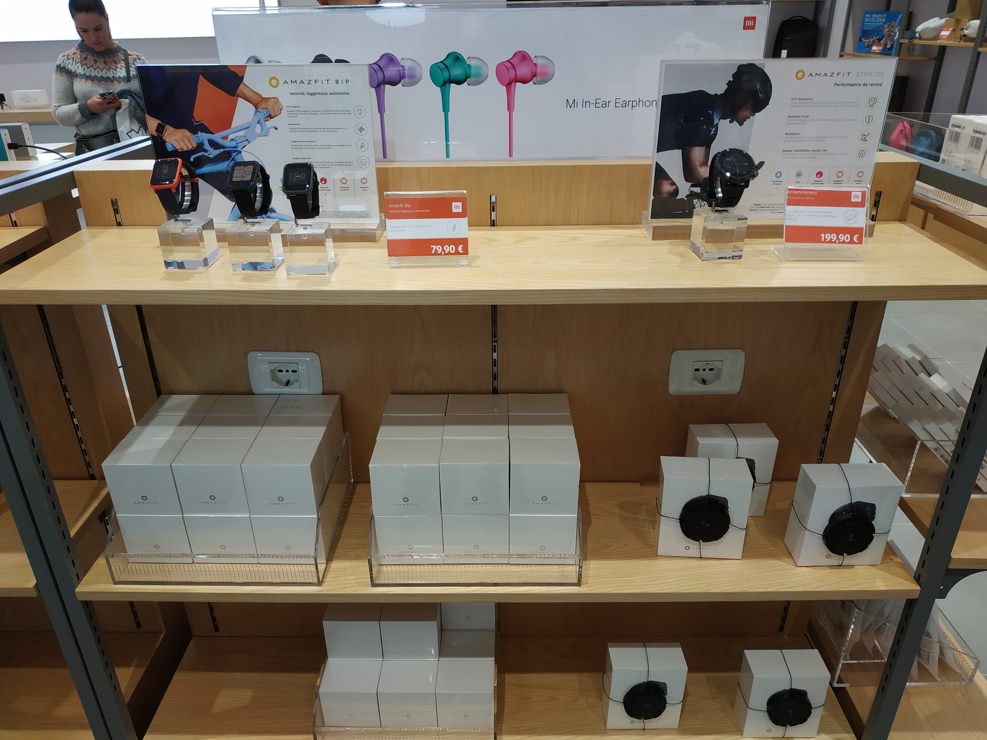 Oggi, a distanza di due mesi, sono entrato ancora nel Mi Store e fatto questi altri scatti dei prodotti particolari all’interno: come quantità non sono aumentati in modo degno di nota, anche se sì erano di più. In generale il negozio mi è sembrato meglio presentato a livello di suddivisione prodotti, cartellini prezzi e categorie.