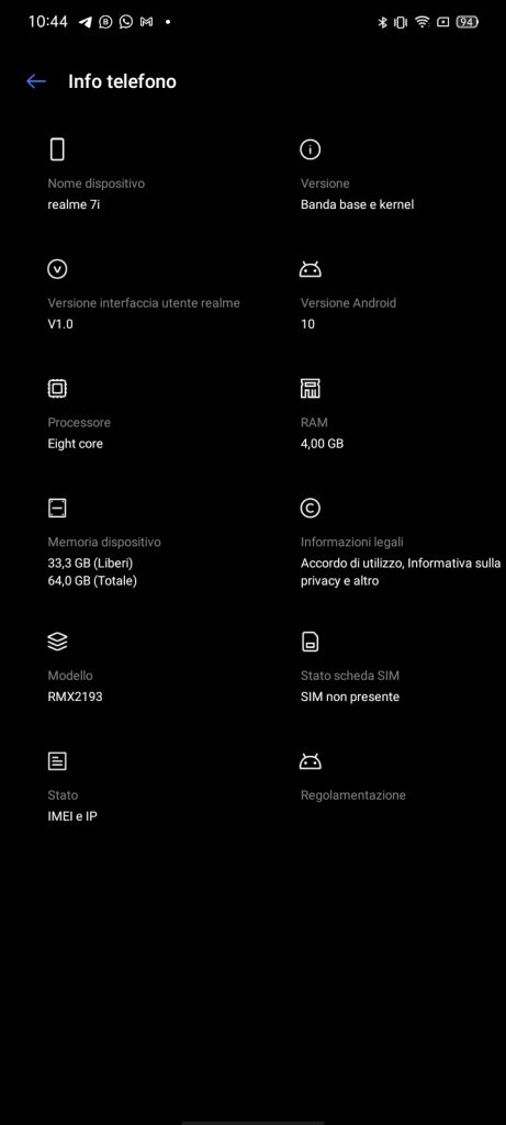 Relame 7i e’ dotato di Realme UI 1.0, interfaccia grafica basata su Android 10, praticamente identica alla solda e apprezzata Color Os 7 di Oppo.
