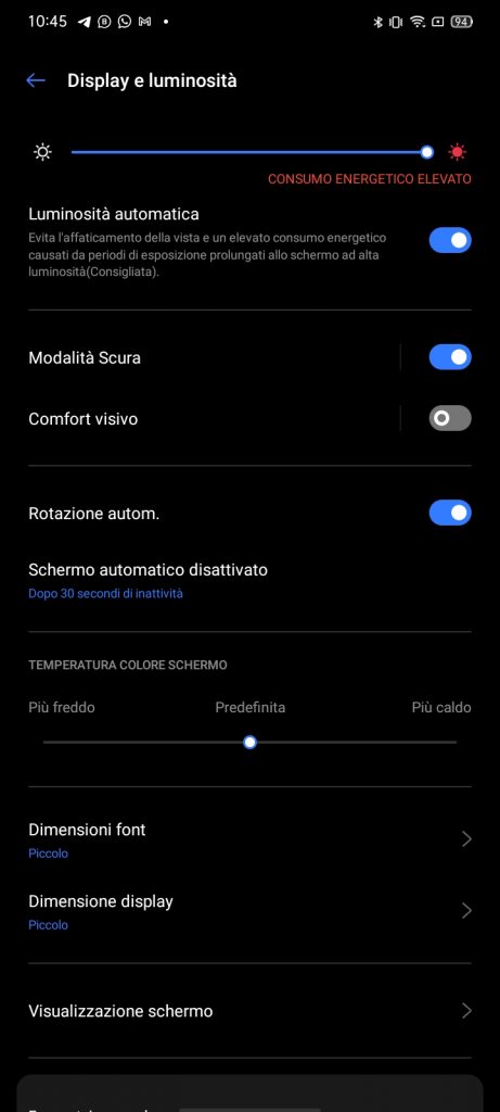 La Dark Mode e’ programmabile su fasce orarie, cosi come la modalità lettura.