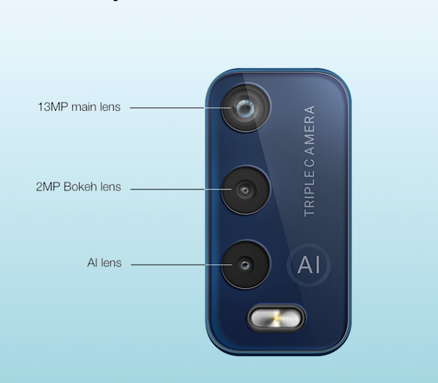 Dal punto di vista fotografico troviamo un obiettivo principale da 13MP all’interno di una tripla fotocamera. La seconda lente da 2MP assicura l’effetto bokeh e, per un approccio più smart al bilanciamento della luce, l’obiettivo AI fa tutto il lavoro! Il suo sensore CMOS supporta la fotocamera principale, utilizzando Auto Scene Detection, ideale per massimizzare la resa delle foto in condizioni di scarsa luminosità.