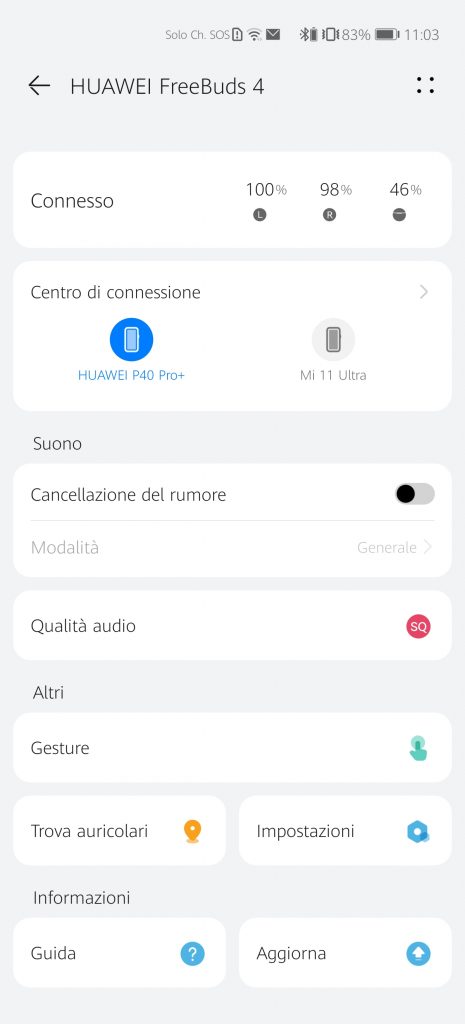 Grazie all’app AI LIFE, presente sia in versione Android che iOS, possiamo controllare le FreeBuds 4 in tutte le sue potenzialità e funzionalità .