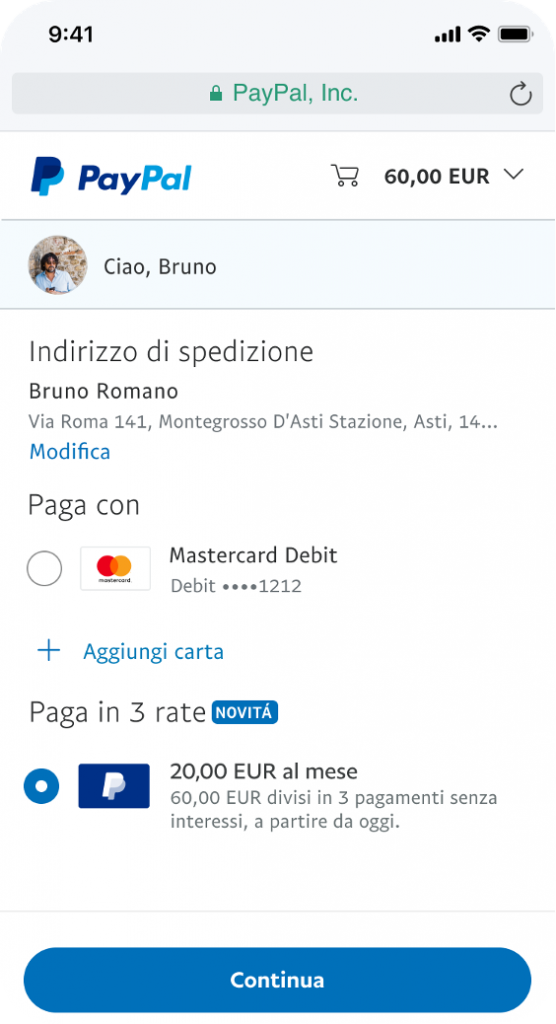 Informazioni su PayPal e Paga in 3 rate