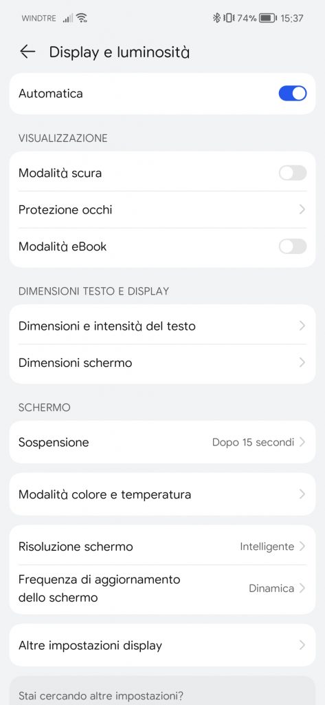Presente Always On, ampiamente personalizzabile sia nei contenuti che nella forma, e tutta una serie di regolazioni software che ci permettono di settare il pannello a proprio piacimento, come la modalità lettura, il tema scuro, risparmio batteria e refresh rate che è dinamico, ma può essere settato a 60 Hz.
