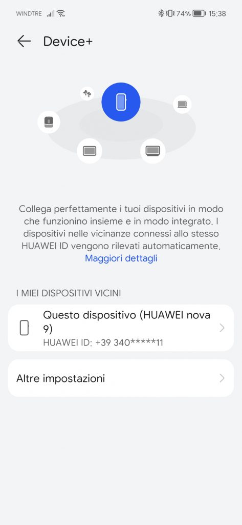 In Emui 12 troviamo quindi, all’interno del nuovo pannello di controllo, visualizzabile attraverso lo swipe dall’alto verso il basso nella parte destra del display, Device+, una sezione che ci permette di visualizzare tutti i dispositivi Huawei collegati con il nostro smartphone in modo rapido e intuitivo, mentre in quella sinistra troveremo le classiche notifiche.