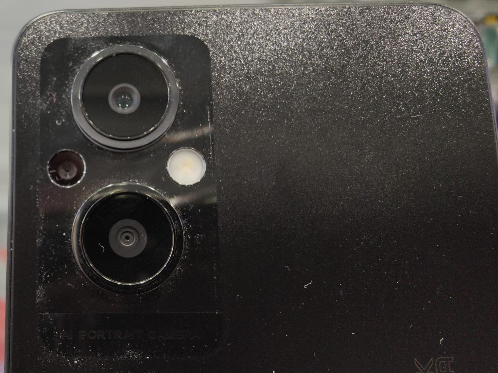 La back cover contiene in comparto cam principale, che è racchiuso in una zona lucida quadrata in alto a sinistra ed è costituito da due grandi sensori principali, uno di dimensioni ridotte e infine il flash led.