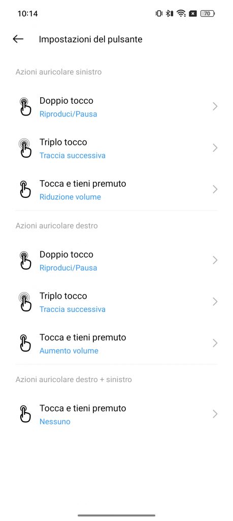 I controlli touch sono precisi e intuitivi, anch’essi personalizzabili attraverso Realme Link. Di default possiamo così interagire :