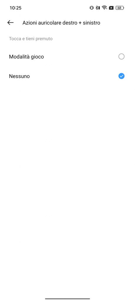 Toccando e tenendo premuto qualsiasi auricolare si attiverà la modalità gaming bassa latenza.