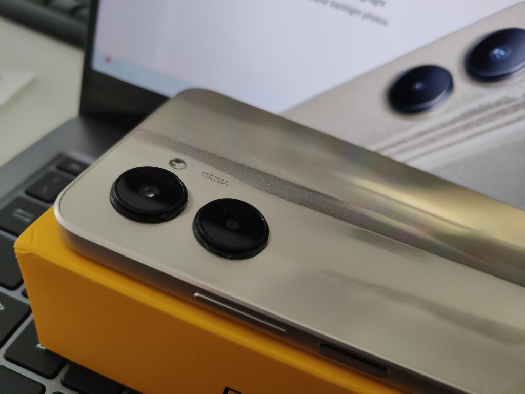 Per quanto riguarda i materiali utilizzati, realme C33 è realizzato con materiali infrangibili e che durano nel tempo, PC e PMMA, che compongono il design della cover posteriore e che permettono di offrire un effetto visivo traslucido. Il design del nuovo smartphone è curato nei dettagli e presenta un pannello posteriore uni-cover dall’aspetto premium con la cornice ad angolo retto e continua anche nell’area della fotocamera. realme C33 ha un corpo ultrasottile di 8,3 mm, che garantisce una presa leggera e confortevole.