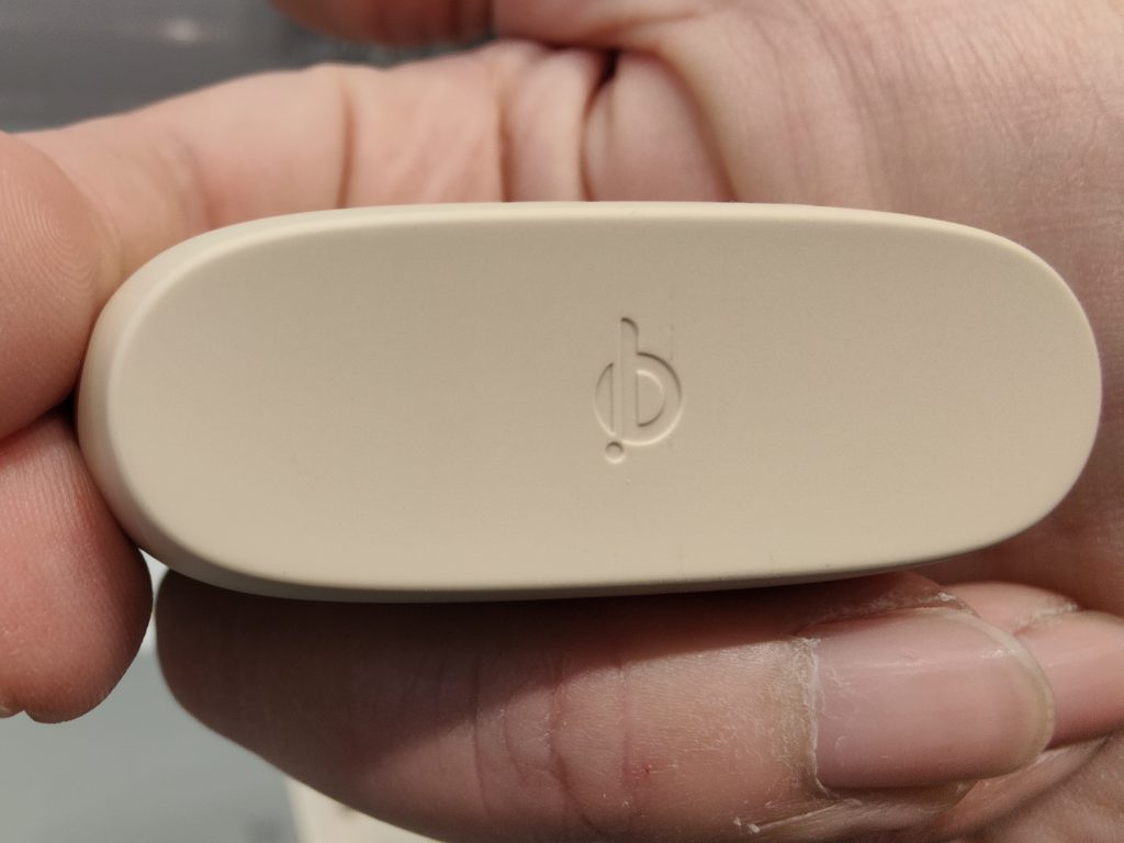 Il case di ricarica, estremamente compatto con i suoi 26×38.9×64.1 mm ed un peso di 40 grammi risulta comoda da trasportare e da maneggiare, grazie anche a una forma ergonomica piatta nella parte superiore e inferiore permettendo di essere appoggiato anche in superfici piatte come una scrivania, ma modellata sui lati per renderlo impugnabile con facilità.