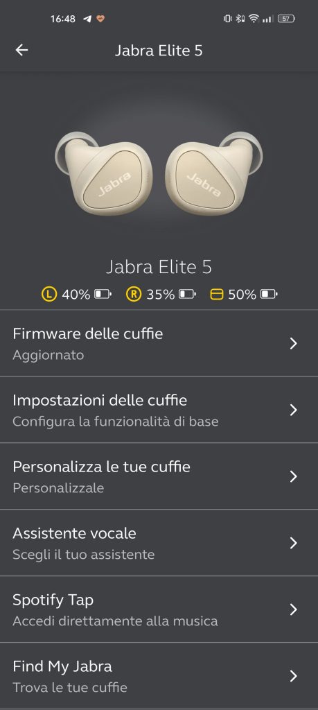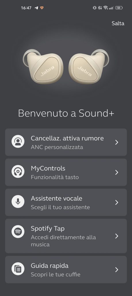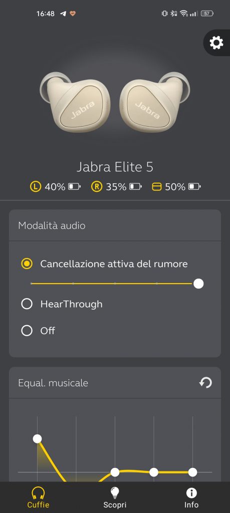 Infine, ma non meno importante, la presenza di Sound+, applicazione che permette di personalizzare in tutto l’esperienza d’uso di Elite 5, dalla personalizzazione dei tasti fisici all’equalizzatore audio.