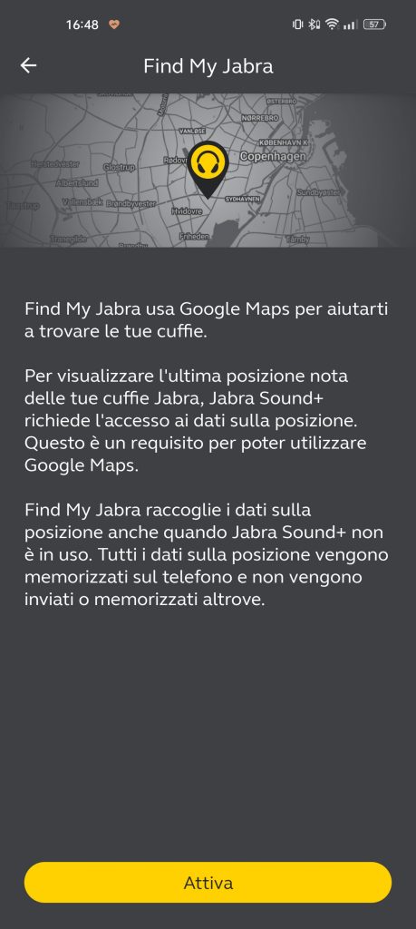 Soud+ permette inoltre di attivare Find My Jabra, per conoscere sempre dove si trovano gli auricolari, oltre a tutti i vari settaggi inerenti a aggiornamenti firmware, Soundscape ( suoni preimpostati rilassanti ), calibrazione, ecc…