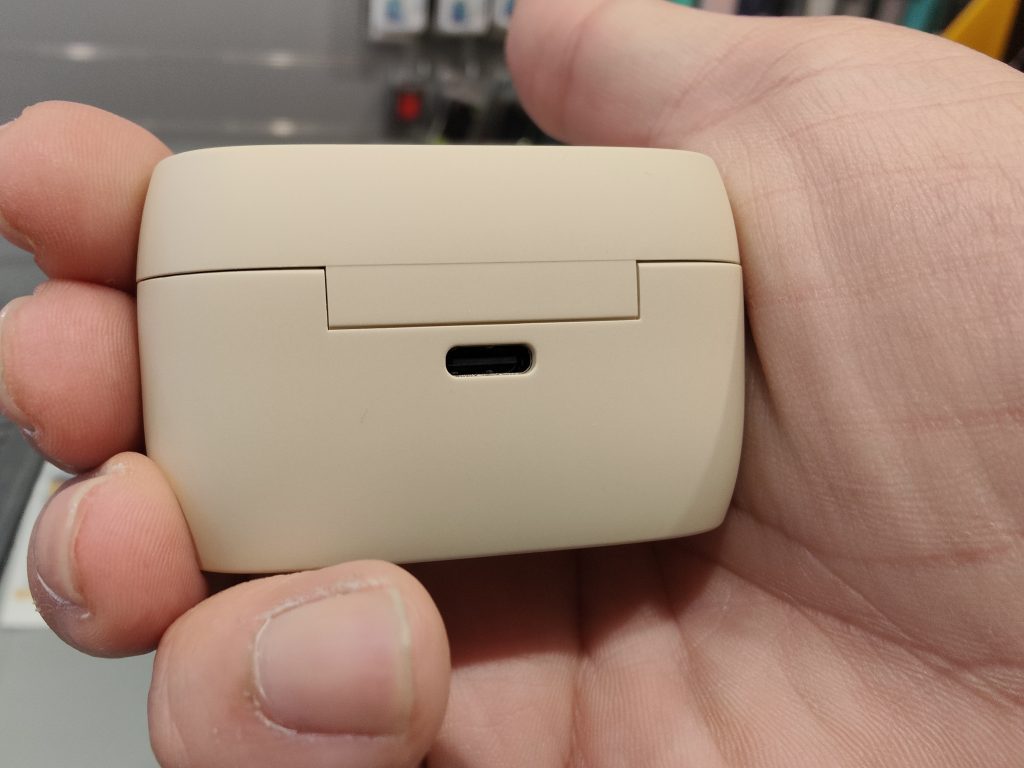Nella parte anteriore del case, oltre al logo del produttore, è presente il piccolo led di stato, in quella posteriore la porta Usb Type C, inferiormente il logo Qi che indica la presenza della tecnologia wireless per la ricarica, mentre la parte superiore è costituita dal coperchio di chiusura, magnetico e solido, che impedisce aperture involontarie e ben protegge i due auricolari posti all’interno, che sono ben estraibili con le due dita grazie a un posizionamento rialzato. Sono riposti nei due vani con i relativi magneti per la ricarica.