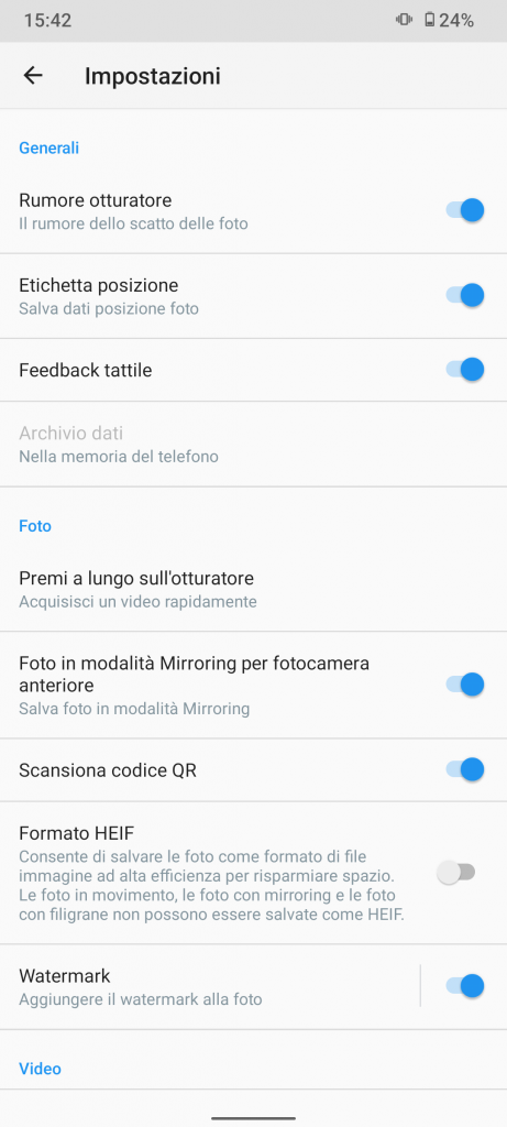 - Anteriore: 16 MP: f/2,4