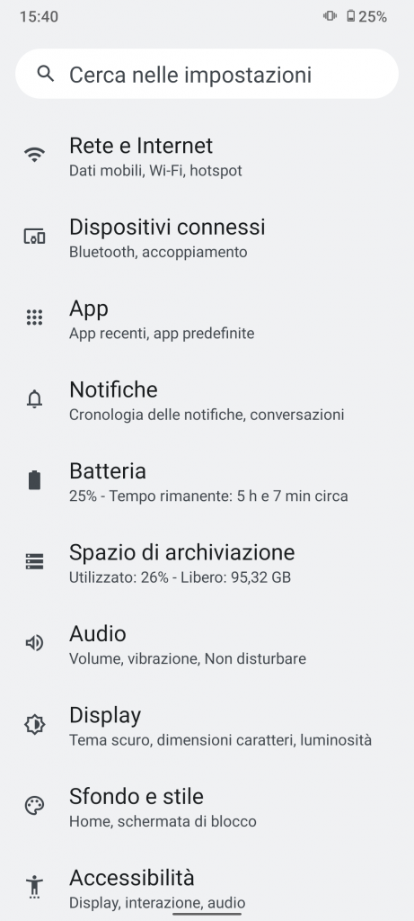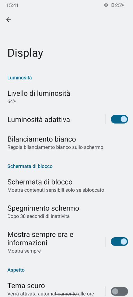 Vi sono tutte le possibilità di personalizzazione tipiche dei dispositivi con Android stock on board, livello di luminosità, dimensioni di carattere e di visualizzazione, colori, frequenza di aggiornamento ( standard o automatica ), modalità scura e luminosità notturna che possono essere programmate.