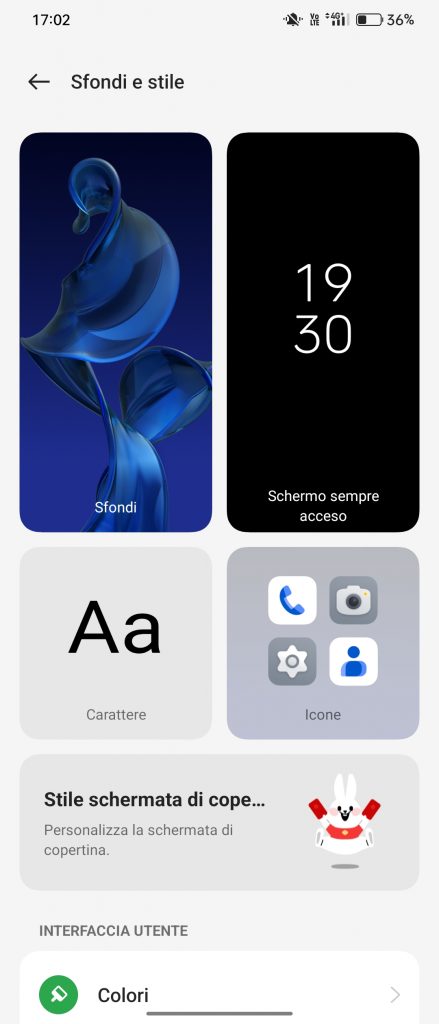 Può essere personalizzato tramite un’apposita sezione presente nella ColorOS in forma e contenuti, con simpatici sfondi interattivi rappresentanti animali domestici, oppure con immagini standard e personali presenti nella galleria.