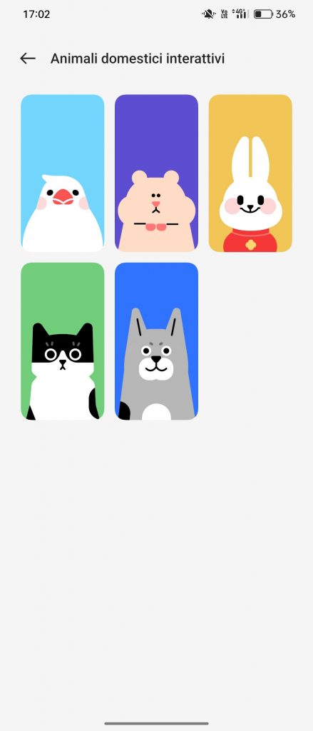 In questa è possibile personalizzare lo stile, con un classico always on, oppure utilizzando gli sfondi tradizionali o i simpatici animali domestici che interagiscono con l’utente finale attraverso il tocco dello stesso, che risponderà con movimenti e smorfie.