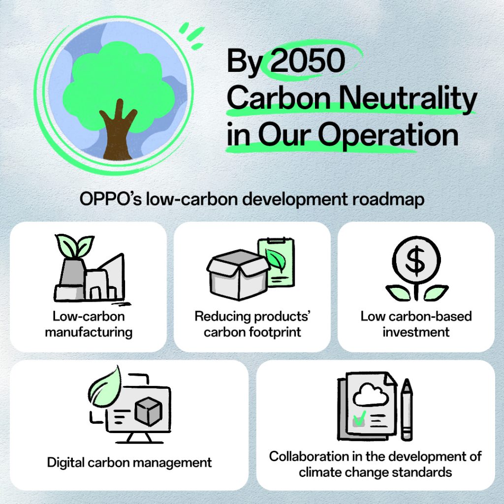 La sostenibilità e la tutela dell’ambiente sono parte integrante della strategia aziendale di OPPO, che nel 2022 ha completato il suo primo inventario globale delle emissioni di gas serra. Sulla base di questi dati, OPPO ha sviluppato il percorso per la riduzione delle emissioni di carbonio e, nel febbraio 2023, ha annunciato come obiettivo quello di raggiungere la neutralità delle emissioni di carbonio entro il 2050. Dalla decarbonizzazione della produzione alla riduzione dell’impronta di carbonio dei propri prodotti, OPPO sta lavorando per un futuro più green attraverso la tecnologia e l’innovazione.