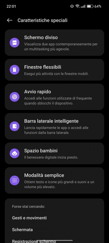 Presente una sezione denominata Realme Lab dove il produttore aggrega tutte le funzionalità più evolute e esclusive del proprio Os, come per esempio la misurazione del battito cardiaco attraverso il finger print e la doppia modalità audio wireless.