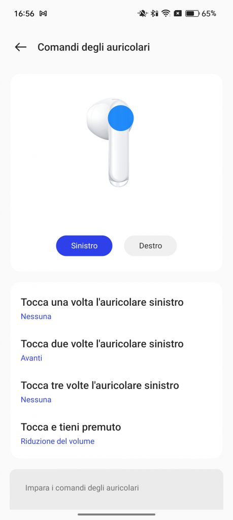 Semplice, chiara e intuitiva da utilizzare, attraverso essa si possono controllare i livelli della batteria, personalizzare i comandi touch, scegliere tra gli equalizzatori preimpostati, verificare aggiornamenti di sistema e personalizzare i controlli touch che sono disabilitati di default e che quindi andranno attivati la prima volta che utilizzano gli auricolari.