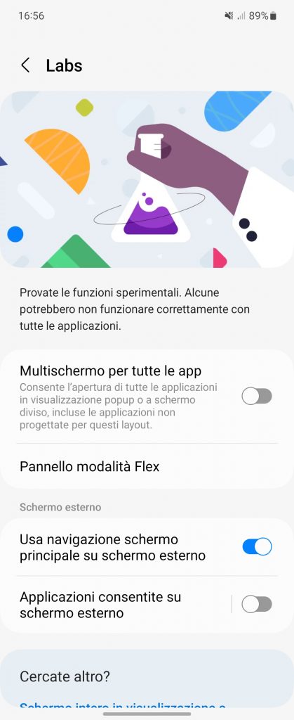 In ogni caso Samsung mette a disposizione in via sperimentale l’applicazione Good Lock, attraverso la quale è possibile adattare, anche se non perfettamente, tutte le applicazioni installate dall’utente finale sul device, con un risultato che durante il nostro test è risultato molto buono, permettendoci di utilizzare, per esempio, Gmail, Browser internet, Telegram, Messenger, Chrome e molte altre abbastanza agevolmente.