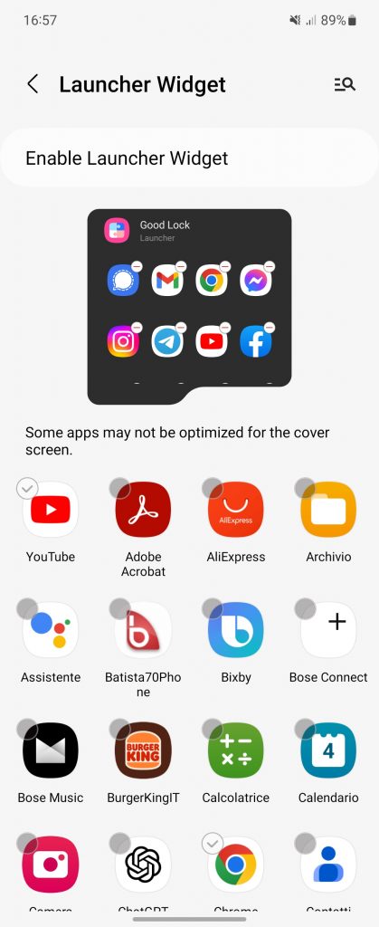 Basterà quindi installare Good Lock e successivamente il modulo Multistar, abilitarlo per poi poter accedere a un vero e proprio launcher alternativo studiato per il display secondario di Z Flip 5.