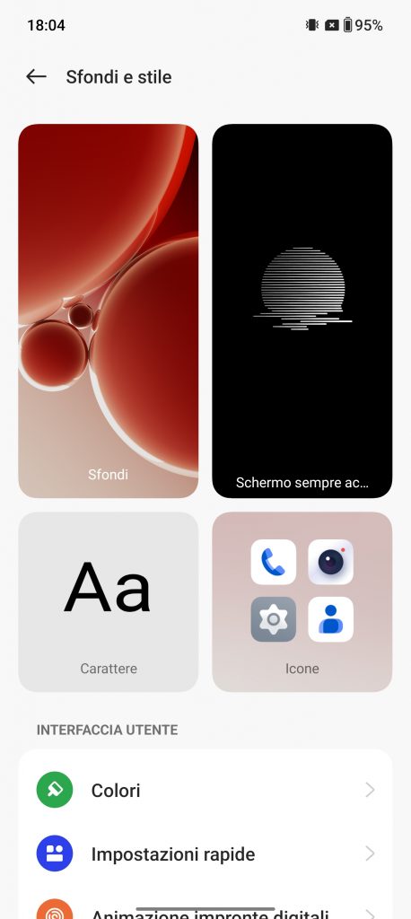 Tutte le personalizzazioni grafiche sono raggruppate in un’unica e comoda sezione, dove sarà possibile modificare temi, sfondi, dimensioni, icone, menù rapido, always on, caratteri.