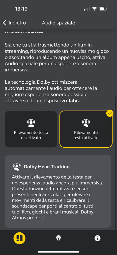 Per fare un esempio pratico, per utilizzarla basta attivare la funzione corrispondente al tracciamento della testa nell’app Sound+.