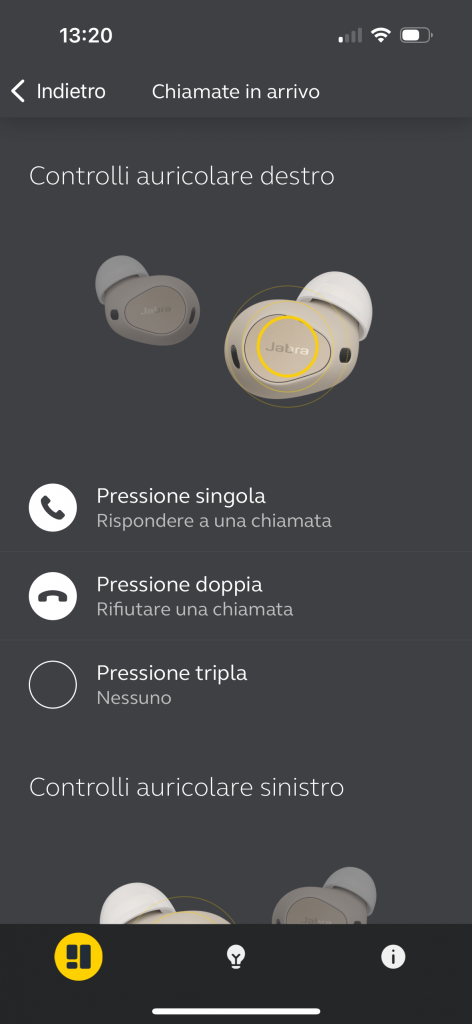 Come in tutti gli auricolari Jabra anche Elite 10 hanno la possibilità di programmare a piacimento i comandi, andando ad assegnare la funzionalità richiesta ad uno, due o più pressioni dei tasti fisici presenti in ogni singolo auricolare.