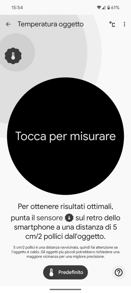 Presente un “simpatico” termometro, che non va a rilevare la temperatura corporea, ma quella cutanea. Probabilmente in futuro sarà implementato con applicazioni dedicate, ma al momento ha solo una funzionalità diciamo scenografica.