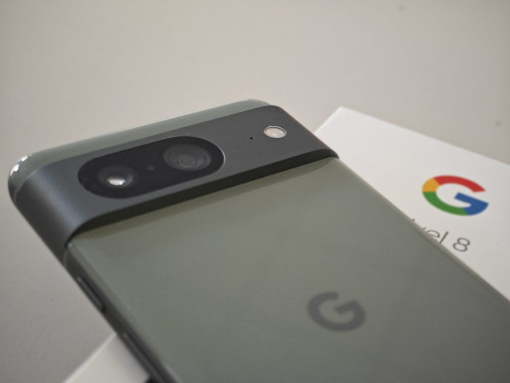 Il design del Google Pixel 8 si presenta come un’evoluzione raffinata del suo predecessore, una versione più compatta, armoniosa e moderna, caratterizzata da spigoli arrotondati e fotocamere leggermente più prominenti.