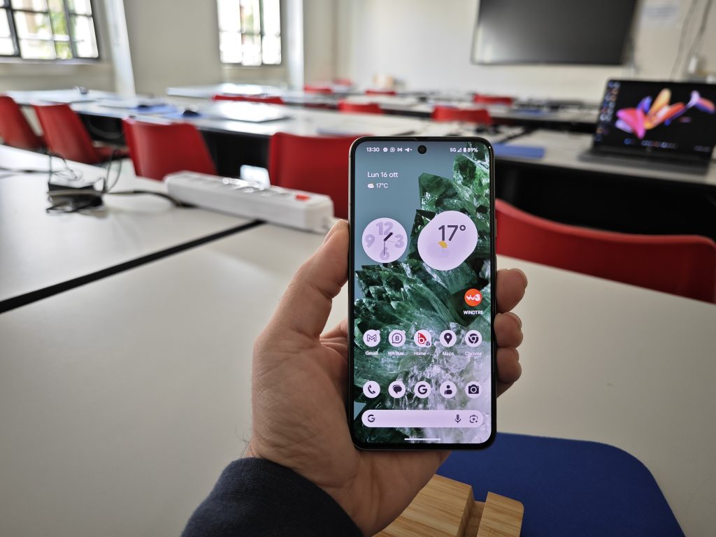 Non abbiamo un display LTPO come nella versione Pro, ma comunque un refresh rate che va da 60 a 120 Hz e che, tanto per cambiare, viene ottimamente gestito dall’intelligenza artificiale presente in Pixel 8.
