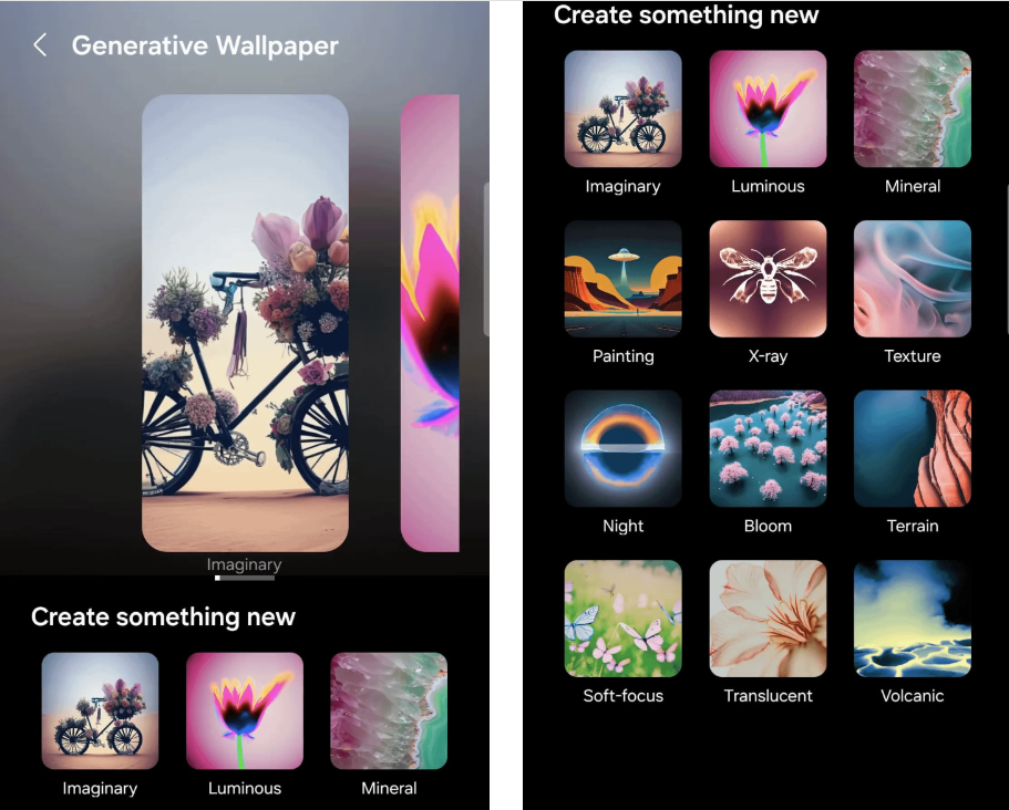 - Simile al Wallpaper AI di Google, One UI 6.1 presenta 12 categorie con prompt predefiniti e opzioni personalizzabili.