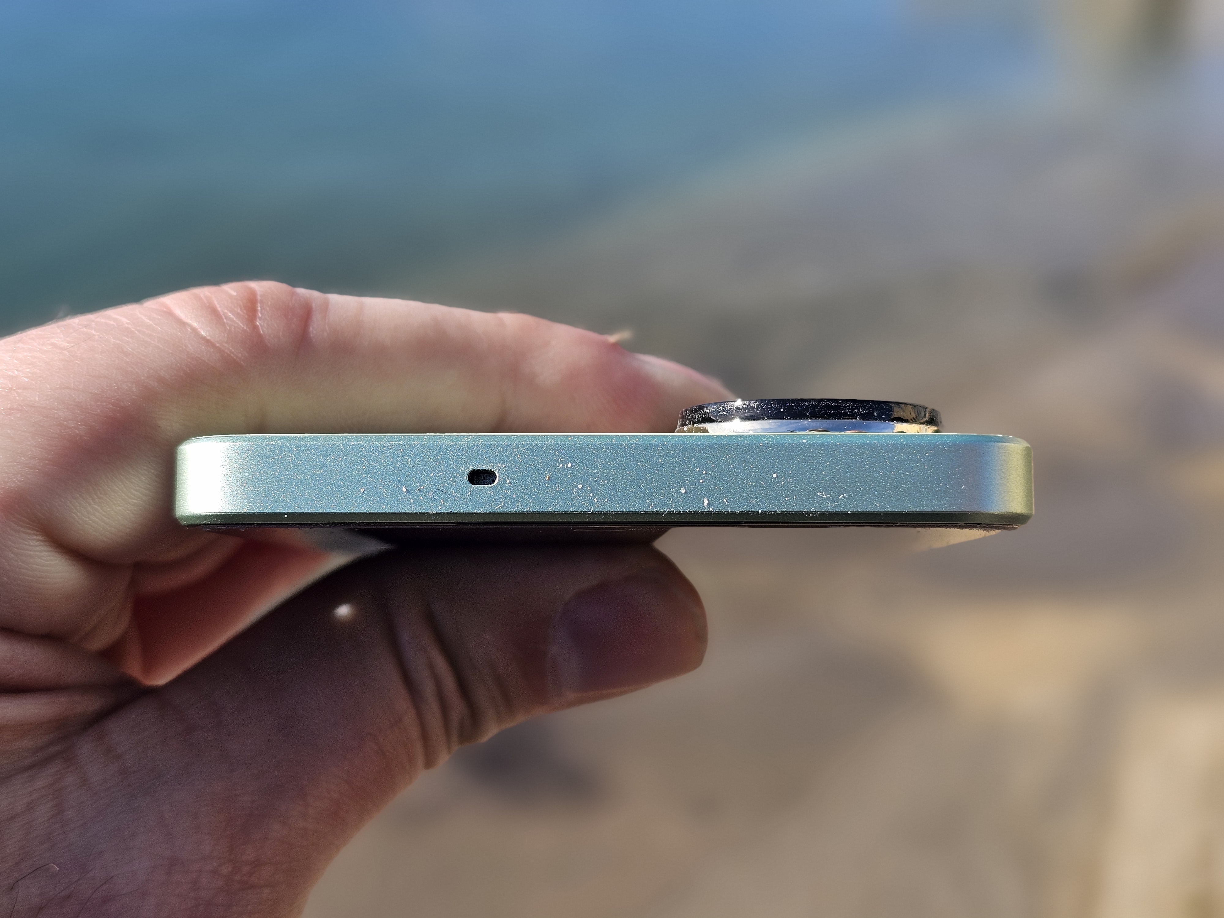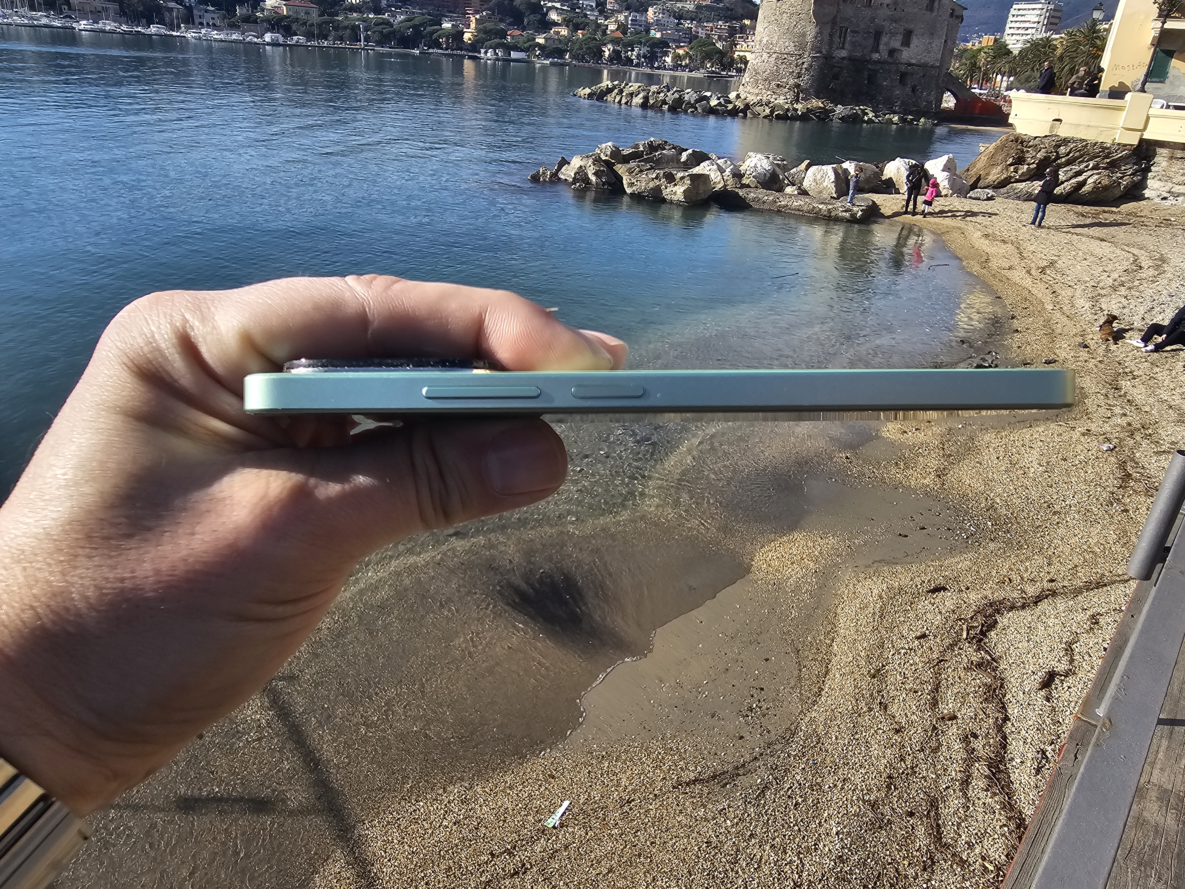 Grazie ai bordi arrotondati e alla superficie opaca, il telefono non scivola facilmente dalla mano e si tiene saldamente. Anche se i bordi arrotondati avrebbero conferito al dispositivo una sensazione di maggiore sottigliezza, la scelta attuale garantisce una presa più sicura nella mano.