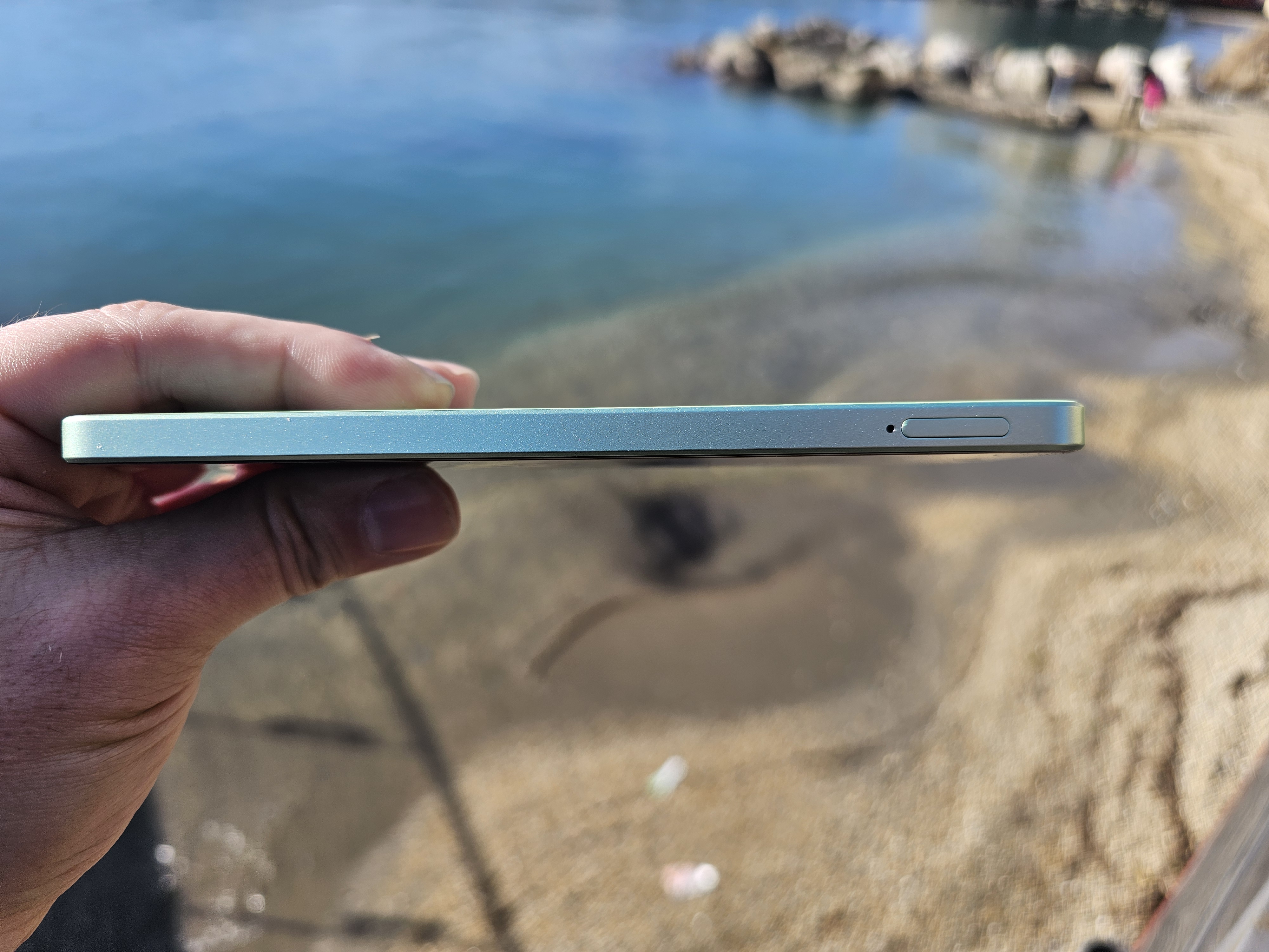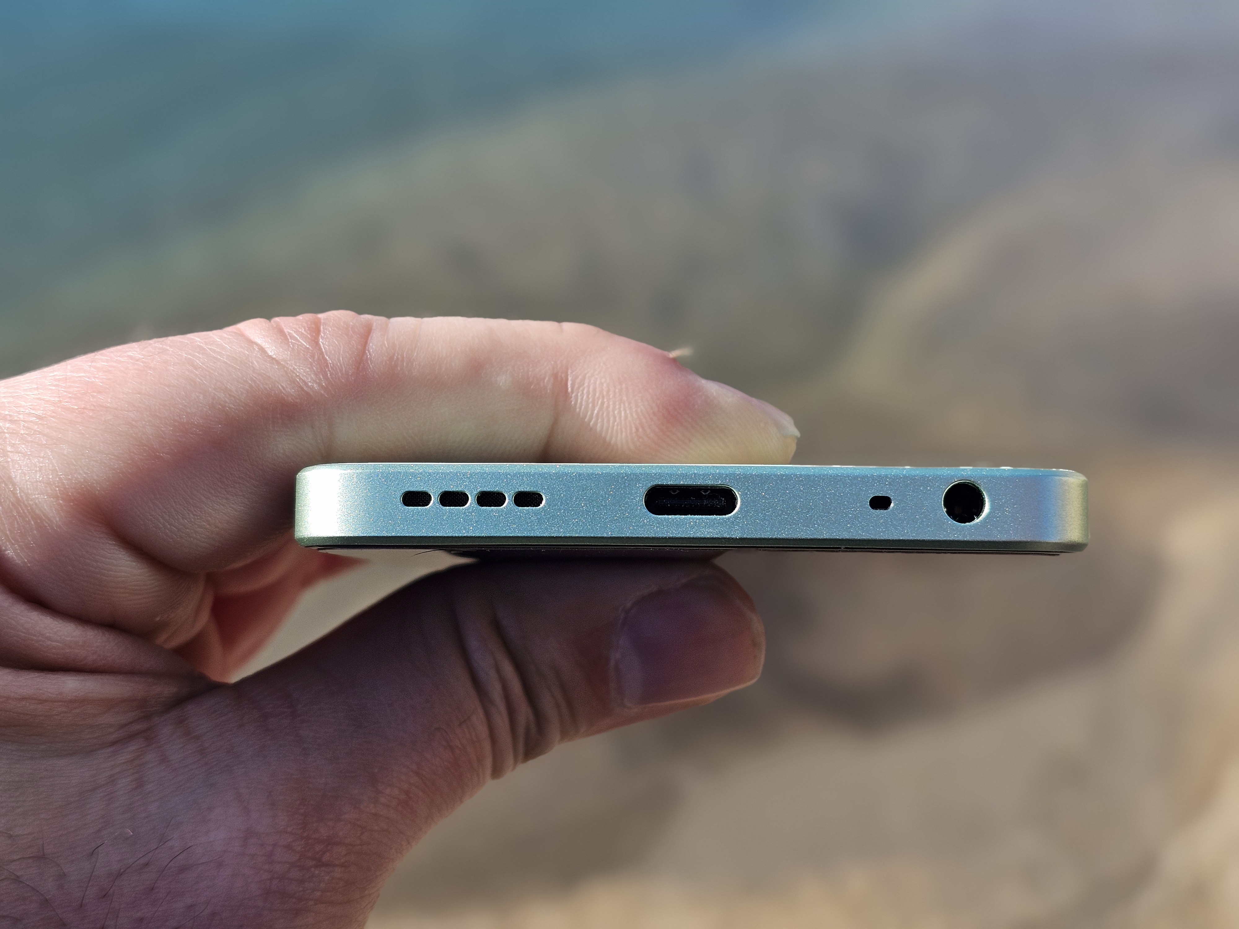 In alto, notiamo una piccola apertura per l’altoparlante aggiuntivo. L’altoparlante principale, invece, è posizionato nella parte inferiore, insieme alle porte Type-C, al jack audio da 3.5mm, nonché al microfono per le chiamate.