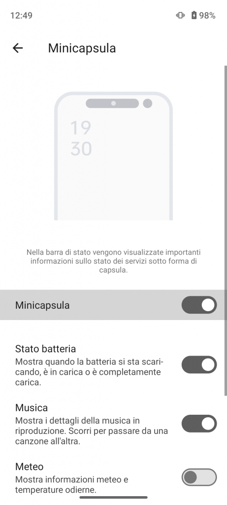 - Android 14 con mini capsule