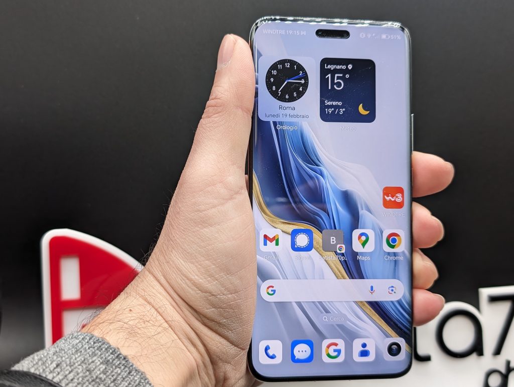 Honor andando in contro tendenza opta per un pannello quad curve OLED LTPO da 6.8 pollici di diagonale, risoluzione 1280×2800 FHD+, refresh rate variabile 1/120 Hz, 10 bit, HDR, 453 ppi di densità e una luminosità massima che raggiunge un picco di 1.800 nit in modalità automatica e di ben 5.000 nit nei contenuti HDR.