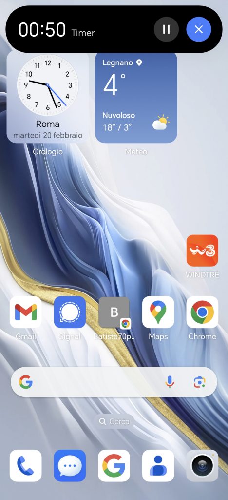 Un’altra novità è rappresentata dalla “pillola” che permette di espandere in stile iPhone la sezione dedicata alle fotocamere frontali per visualizzare informazioni e interagire con applicazioni: al momento abbiamo avuto modo di provare questa funzionalità con riproduzioni multimediali, YouTube Music e cronometro, ma pensiamo che anche questa verrà sviluppata dal produttore.