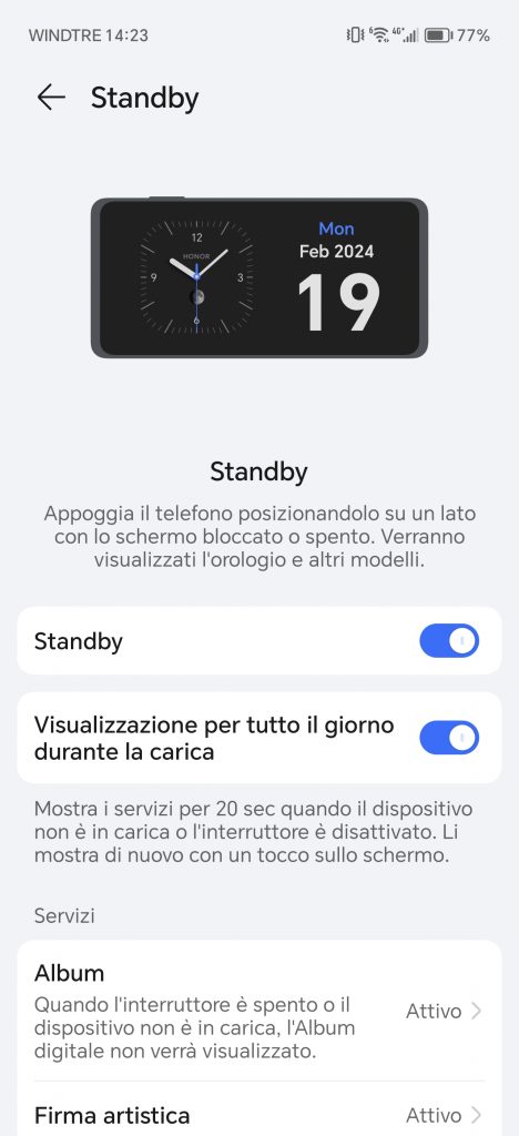 Anche l’Always On Display è presente e ampiamente personalizzabile in forma e contenuti, con l’opzione in stile Apple/Samsung, ovvero la possibilità di lasciare in controluce lo sfondo dello smartphone anche quando il pannello è spento. Di sicuro impatto, anche se l’autonomia potrebbe in qualche modo risentirne (poco su Magic 6 Pro, come leggerete nella sezione Autonomia della recensione). Permane la soluzione classica, quindi le opzioni presenti sono schermo parziale o schermo totale.