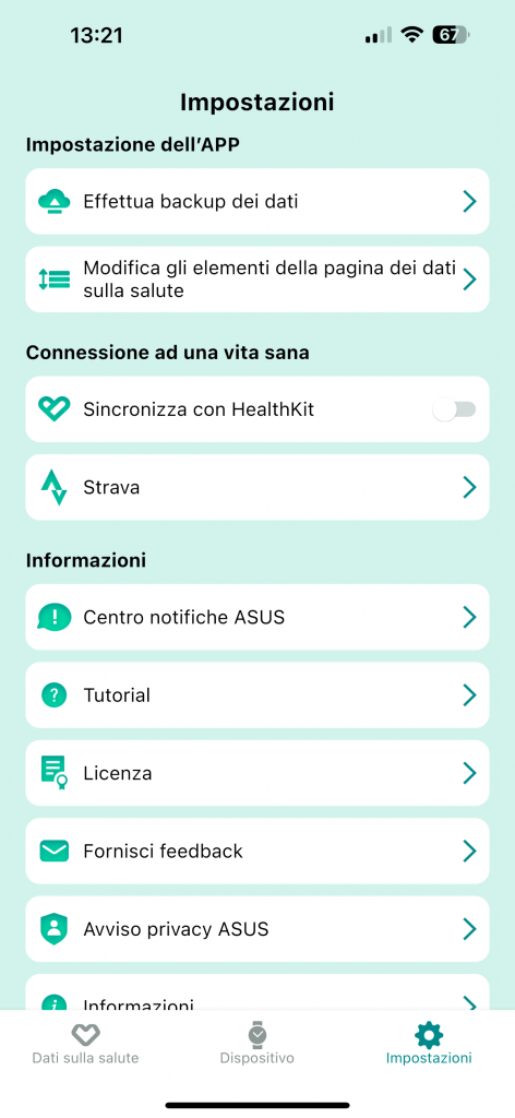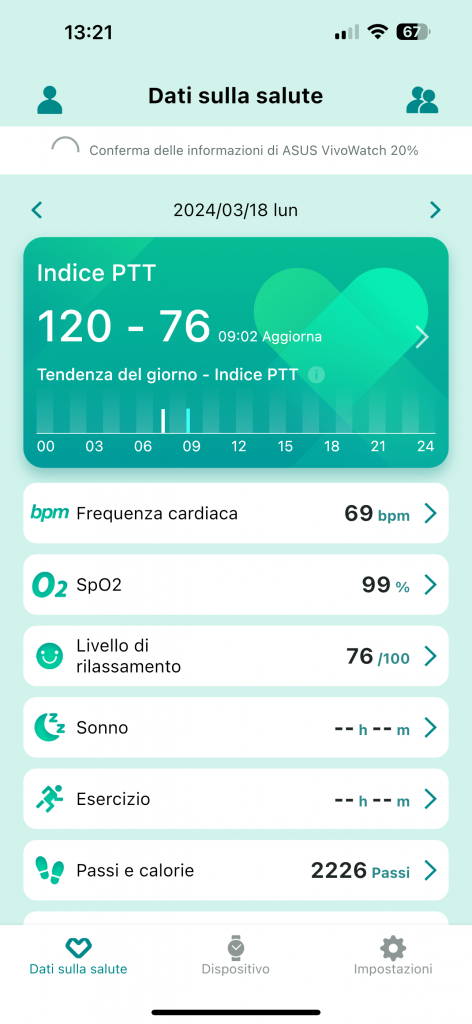 Sosftware e funzionalità Asus VivoWatch 5 Aero