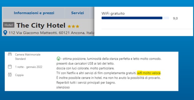 Piattaforme online come Booking e TripAdvisor mostrano in maniera evidente la valutazione sul servizio Wi-Fi che non si limita più a indicare la disponibilità gratuita o a pagamento, altri parametri